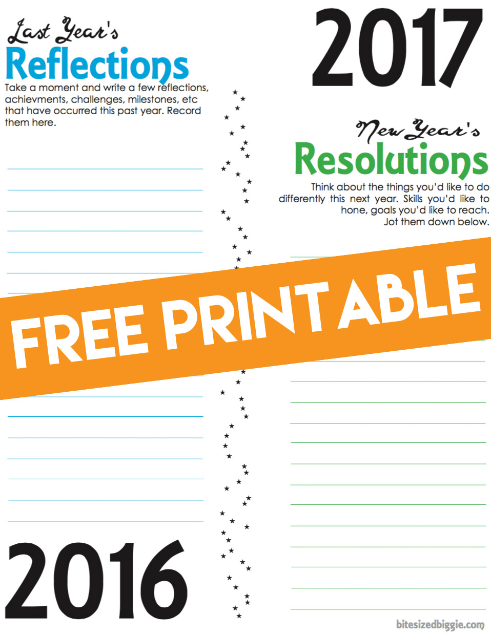 We all know it’s tradition to make New Year’s Resolutions, but it’s also a great time to reflect on the year you’re leaving behind. Use this printable sheet to keep a record of your past and future. File it away and make a tradition of looking them over at the end of each year.