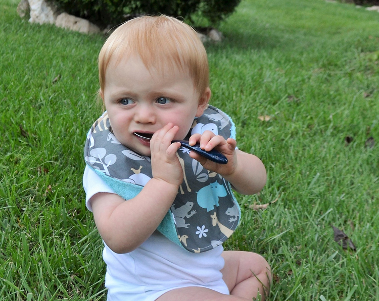 Although we waited a very LONG time for our baby, we only learned of his arrival one month before he was born. Sewing for my cutie is constantly on my mind but I just can’t find the time. I suppose infants have a way of keeping parents busy. However, I am now in desperate need of bibs, so I’m off to make him some adorable bibs. These are generously sized and perfect for my 14 month old. They are my go-to project for baby gifts since parents can never have too many! Go ahead and whip several up for your favorite baby today.