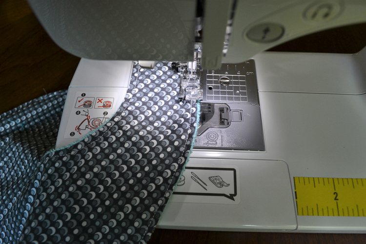 - Trim your fabric so it has about 1/4″ seam allowance, but, along the section of your non-sewn edge (the opening you use for turning right-side out, trim to 1/2″(see picture below). This will ensure that your top stich will close that opening once it is turned right-side out.