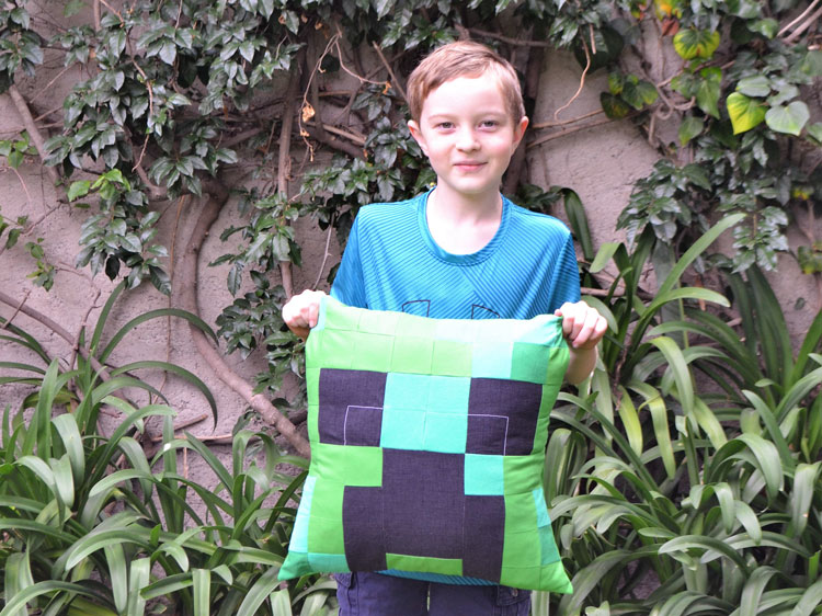 My son is into playing Minecraft and LOVES anything related to the game. At first I didn’t understand the excitement, until I sat down and watched him build and explore. It allows him to be creative while also problem solve. So, I made a cool Minecraft creeper throw pillow for his bedroom. He was thrilled and couldn’t wait for me to finish sewing it. The pillow came out perfect and it was a blast to make.