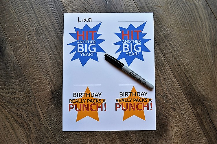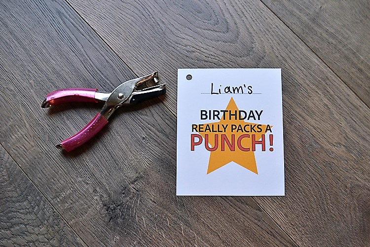 - Thread through some twine and tie the card to a punching balloon (or two).
