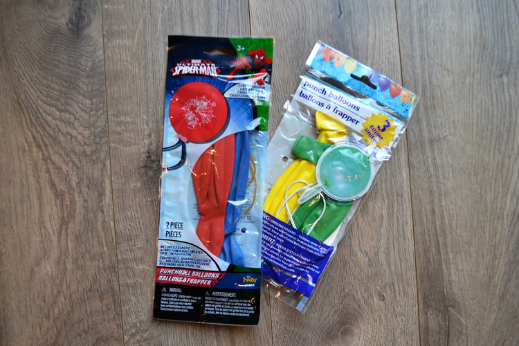 Many kids brought in super fun goodie bags, filled to the brim with toys and cute items. Hoping to come up with something fun and memorable, I wracked my brain and realized that the biggest hit from the dollar store for my two kids (age 2 and 7) are the punching balloons! Those $1 magical spheres keep them entertained for an hour or more!