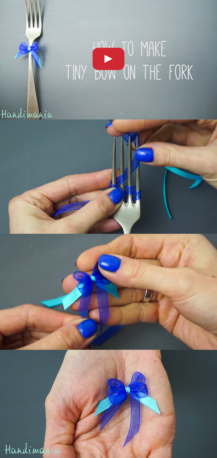 Decorate your tiny holiday gifts with the most adorable teeny tiny bow! Watch this video to see how simple it is to make one (or 20) with just a fork and some ribbon. Who knew a fork could be such a useful craft tool? You’ll want to make an army of little adorable bows to add to crafts and gifts!